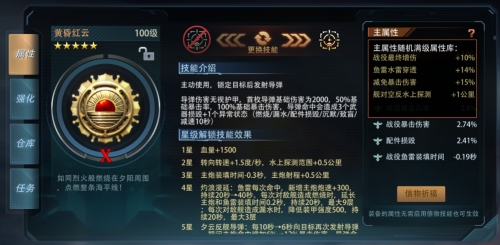 4技能:受到火炮攻击时,新增来源敌舰主炮\副炮装填时间和极限装填时间分别增加1.5秒,持续15秒,受到鱼雷攻击时,新增来源敌舰鱼雷装填时间和极限装填时间分别增加1.5秒,持续15秒,并被点亮3秒。启动特殊装甲期间,副炮最低面板伤害数值计算到主炮基础伤害上