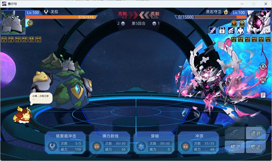 | 震慑怒吼 | 属性攻击 | -- | 5 | 49 | 必中;4回合内免疫所有受到的异常状态;使对手全属性-1,自身体力低于对手时弱化效果翻倍;先出手时免疫当回合受到的攻击伤害,若对手为自身天敌则免疫并反弹给对手造成伤害值50%的百分比伤害;后出手时令对手下1回合先制-1 | |