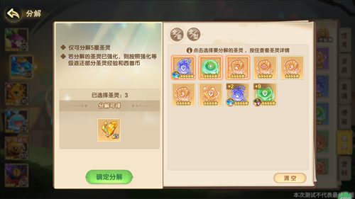 圣灵同样可以进行分解,但目前仅支持分解五星圣灵,分解后获得的封灵碎片可以进一步培养你的圣灵进行升阶~