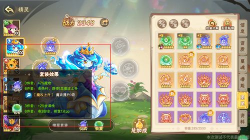 而像精灵玲珑由于部分技能的PP值较低,使用恢复圣灵可以每三个回合增加一点pp值~使用仪式圣灵又可以加强她的魔攻~小西普们可以根据自身需要和要打的BOSS灵活搭配,不过需要注意的是同属性圣灵只有装配到3个或6个才能触发套装效果~小伙伴们前期可以根据系统推荐选择合适的圣灵~