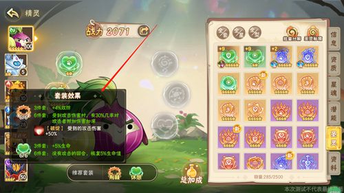 圣灵界面下方会出现一个推荐套装,装备不同的圣灵会出现不同的效果,像圆葱骑士这只精灵主要靠自身的生命值撑住不被击败,用毒粉技能不断消耗对手取得胜利,那相应休憩和荆棘两种效果对于圆葱骑士来说是最好的~