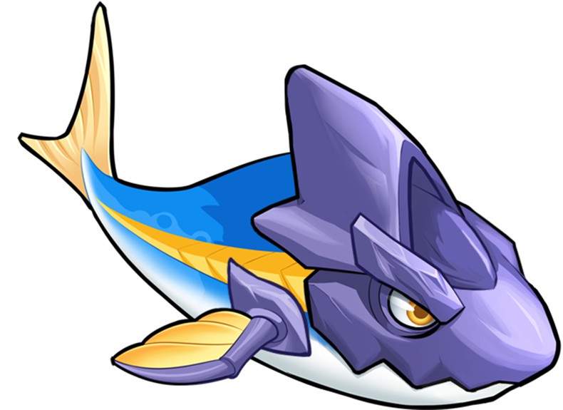 化石龙鱼(左),使用【滚石龙鱼晶核】可以进化为滚石龙鱼(右),【滚石龙鱼晶核】在永恒梦境使用600个碎片进行兑换