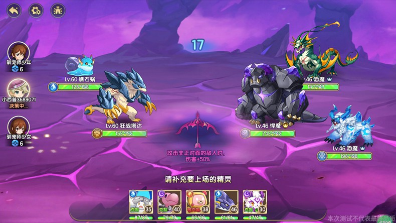 匹配/单人模式进入游戏后,会赋予你本次战斗的能力,此能力将一直持续到战败,选择战斗需要上场的精灵。可以根据对面精灵属性,上场能够克制敌方的精灵,