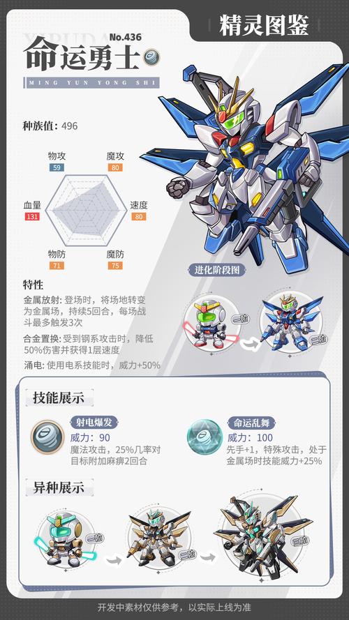 命运勇士的属性为单钢系钢系是被风系和暗系克制的,所以我们无论在PVP还是PVE里都不要硬刚风系和暗系的精灵。钢系是克制草系和龙系,如果对面是蓝龙王或者螳螂的话我们可以考虑打一手
