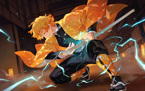 全新英雄我妻善逸已加入永恒之地!使用雷之呼吸的剑士将唯一习得的剑型不断磨练,用极致的速度斩杀敌手!来到永恒之地的他完美还原了原作中的角色能力,以“连闪”和“觉醒”作为英雄特色,我妻善逸能够在战斗中不断使用“霹雳一闪”进行连击,并基于连击数量造成大量伤害;满足移动距离后,我妻善逸更是能够进入觉醒状态,获得强大的增幅和突进能力,完美还原施展雷之呼吸,将一之型打磨至无可精进地步的强大剑士!