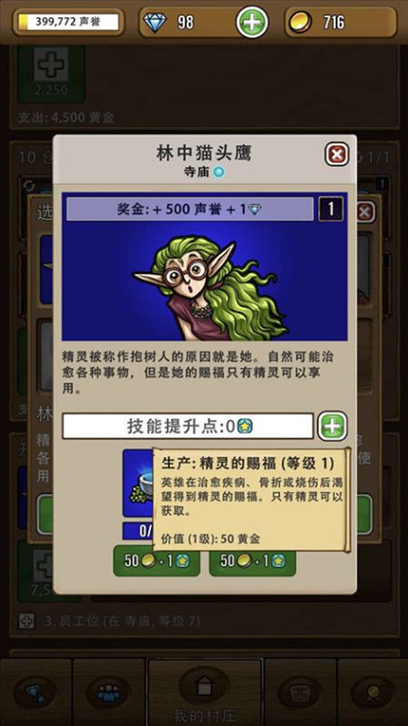 在接取任务:靠赐福赚钱之前,你必须在“我的村庄”内先建造一座寺庙并雇佣一个队员。