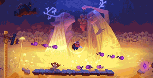 从游戏的预告中我们也可以发现,《奥德玛》生动的平台冒险真的与《雷曼》非常相似,在奇异的动画场景中传说跳跃,躲避着射过来长矛,跳跃危险的障碍,从这些细节很容易看出游戏团队对细节的打磨程度。