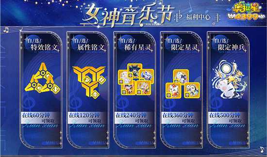10、【音乐会福利】自选稀有神器累计在线时长,即可领取稀有神器,每种稀有神器可免费自选1次,领取后每种奖励最多可星币再购3次!