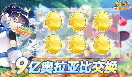 6、【蓝宝15周年福利】九亿奥拉亚比大交换九亿奥拉亚比大交换,满背包神宠轻松得!前往指定活动页面,随机抽取16只光启亚比,可以与其它小奥拉进行亚比交换,最多可从交换后的16只中随机抽取并获得其中6只亚比。使用活动道具可缩小随机范围哦。