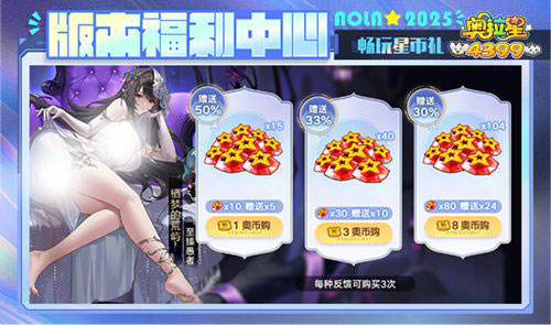 6、【版本福利中心】畅玩星币礼购买畅玩星币回馈,获得的星币加加加!购买星币回馈,计入充值星币。