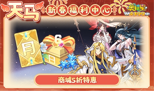 12、【新春福利中心】商城5折特惠活动期间,商场亚比、皮肤、道具等享受5折特惠,月卡买1赠1,更有新春特惠礼包上架!