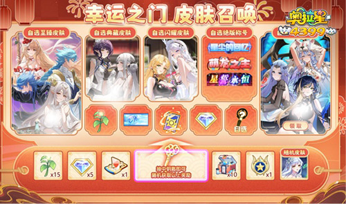 8、幸运之门 皮肤召唤超值皮肤召唤来袭,抽奖有机会打开幸运之门,获得本轮全部奖励并获得1次幸运之门奖励!每人仅可进行10轮抽奖,奖池包含自选至臻皮肤、自选典藏皮肤、自选暗金皮肤、自选闪耀皮肤、自选绝版称号等珍稀奖励。