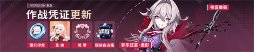 本期战备物资新增享乐狂宴·邀影角色卡/晋升印章及其推荐装备,舰长可使用恒质纯晶进行兑换,兑换时间持续至8.6版本结束前。