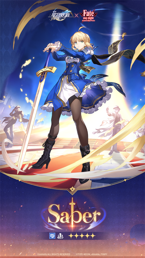 7月11日12:00起,开拓者可使用「星轨专票」参与联动跃迁,获取联动限定5星角色「Saber(毁灭•风)」。