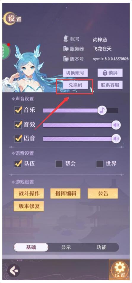 兑换方式:右下角展开菜单 【设置】—— 右上方 【兑换码】,输入兑换码进行兑换