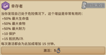 4、原本只能单一提供+50%最大耐力的强化将被替换为能够提供更加生命值、饥饿值、耐力、防御和抗热&抗寒能力的强化。