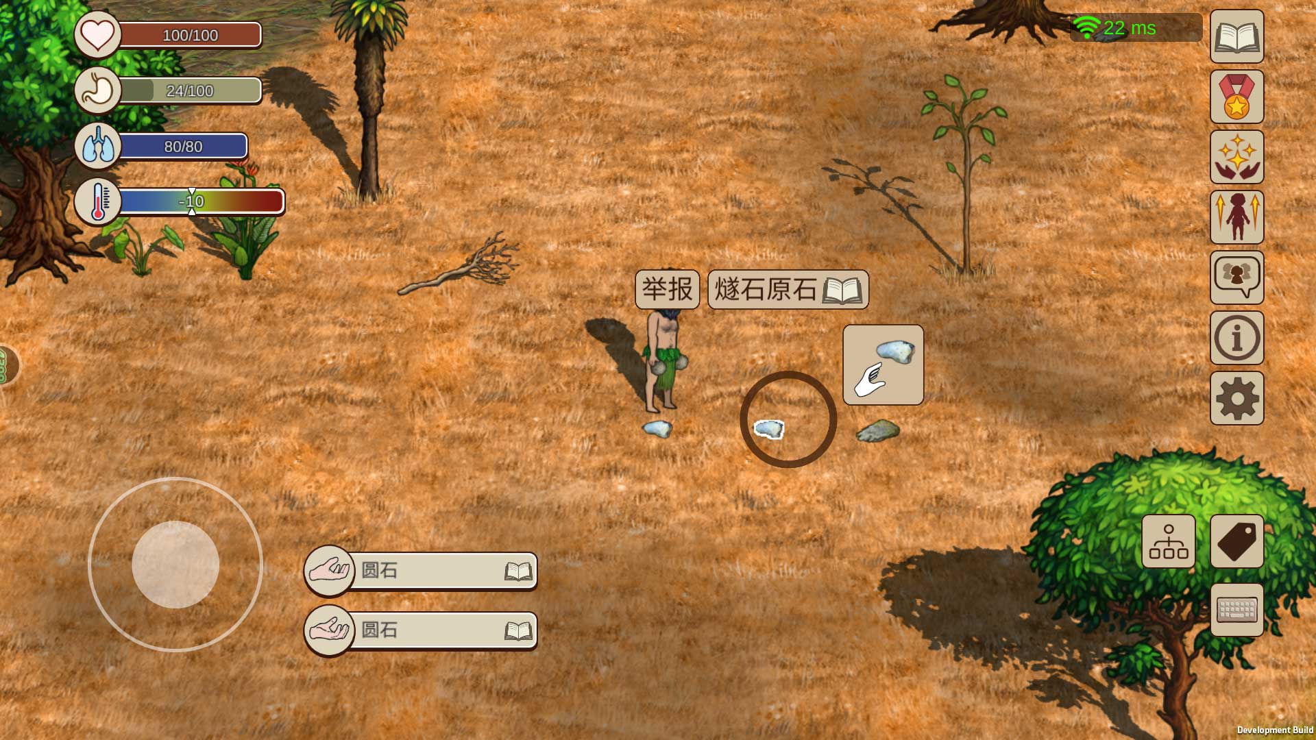 新手村民刚开始可以通过采集获取生存点数,以此解锁第一个实用工具——燧石刀刃
