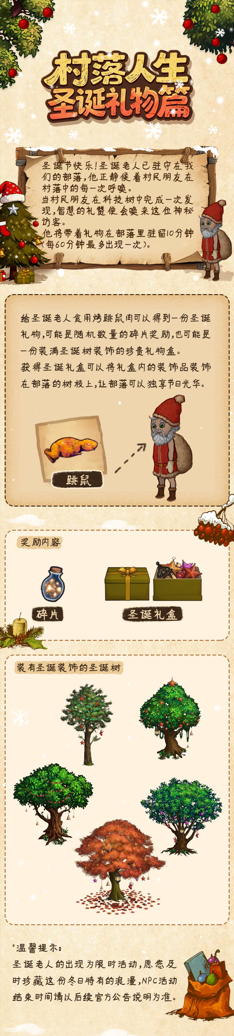 当然,不止有美好的祝福,还有实在的攻略!圣诞老人已造访村落世界,他带来了哪些惊喜?又该如何获取圣诞礼物?不用担心,最新一期《村落人生》生存指南——圣诞礼物篇已为各位准时送达。
