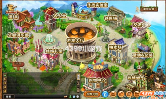 进入到游戏后,首先会进入到游戏主界面。主界面中的各种建筑具有不同的功能: