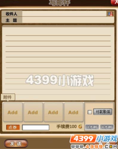 附件:点击附件下面的“Add”小框可以添加邮件附件,可用于赠送及游戏内交易。