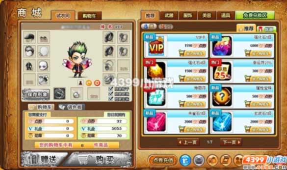 试衣间:在这个页面可以查看&购买玩家当前的形象,点击商城中的服装后可以查看&购买试穿形象。