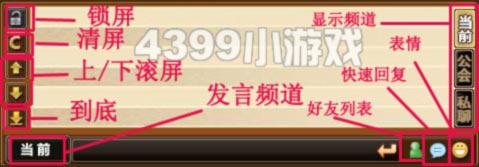 显示频道:点击“当前”“公会”“私聊”可以切换聊天显示频道。