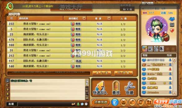 房间列表:所有该频道玩家建立的游戏房间列表。