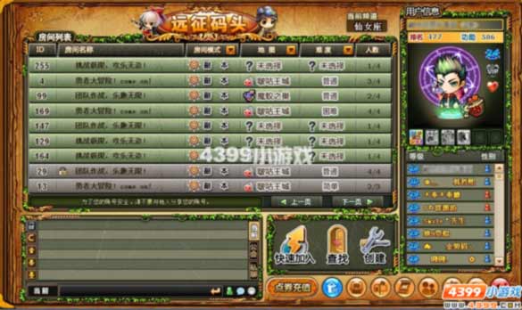 房间列表:所有该频道玩家建立的游戏房间列表。