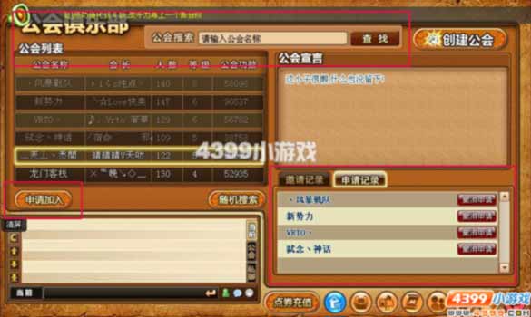 申请加入:选择想要加入的公会,点击申请加入就可以申请加入此公会。公会会长/副会长同意申请后就可加入公会了。