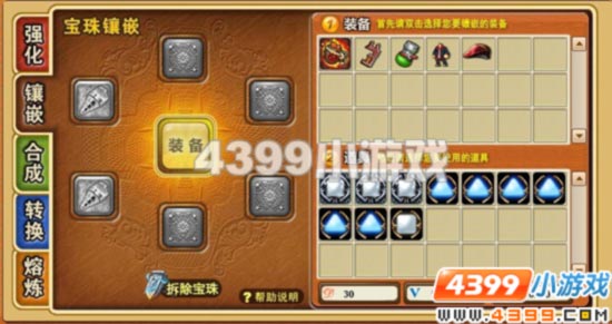 已开启的宝珠插孔:当前装备已经开启的宝珠插孔,可以放入相应形状的宝珠进行镶嵌。