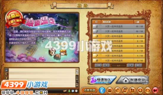 创建房间:可创建一间温泉房间