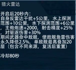 2. 约翰费舍尔:大元帅技能,每发炮弹命中敌舰永久降低敌舰武器规避1%→2%