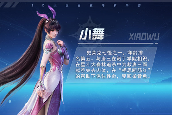 史莱克七怪之一,年龄排名第五。与唐三在诺丁学院相识,在星斗大森林追杀中为救唐三而献祭失去肉体,在“相思断肠红”的帮助下保住性命,变回柔骨兔。