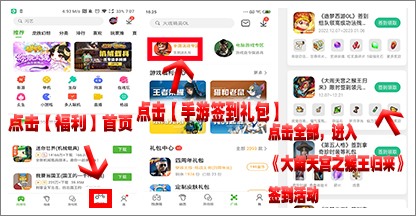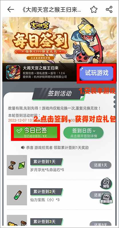 4、未安装用户下载并安装《大闹天宫之猴王归来》,即可参与签到(已下载用户可直接更新后到活动页面参与签到);