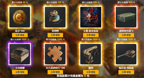 | 活动期间,累计充值金额达到指定要求,即可领取对应回馈奖励。