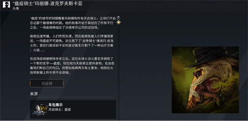 独特头像“玛丽娜·波克罗夫斯卡娅”目前可供玩家使用。它将可以通过购买车包“天启骑士:瘟疫”获取。