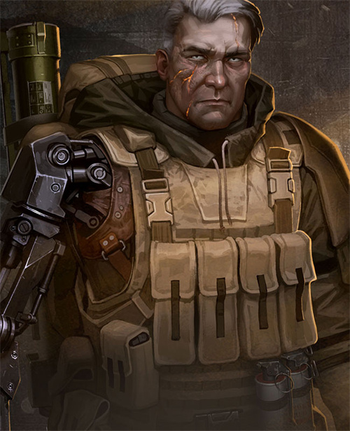 埃里克·斯塔尔(Eric Stahl, the Iron hand)出生于1995年11月10日,从他记事起就开始为祖国效力。神秘灾难“创世”爆发时,埃里克还只是一名普通士兵,当时他与几名高级军官一同继续为祖国效力。后来他们不得不考虑由埃里克组织一支精英作战部队——野战军。