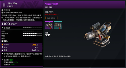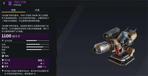 各位幸存者好!今天介绍的是史诗级别的特殊武器:“辩论”钉枪。