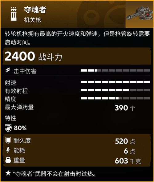 接下来这位更是重量级,那就是使用“夺魂者”作为主武器!“夺魂者”完全没有过热和装填的事情需要担心,唯一的限制是弹药数量,恰好的是“长号”也会很受弹药数量的困扰,可以共同享受到来自弹药箱的加成。除此以外,“夺魂者”的最大特点是几乎完全平均分布的伤害输出能力,能够全程享受到来自加热的伤害加成。