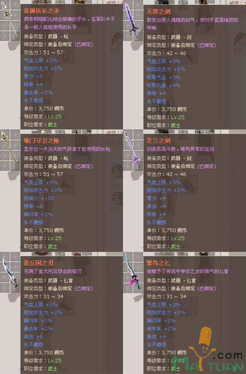 作为惊天地、泣鬼神的红色装备,小编首先要为大家介绍的,当然是各位英雄手上握着的利器,剑、矛、枪、刃、匕,每一样都有特别之处哦!最重要的是,这些红色武器,它们都具有永不磨损的属性,千年保持锋利。