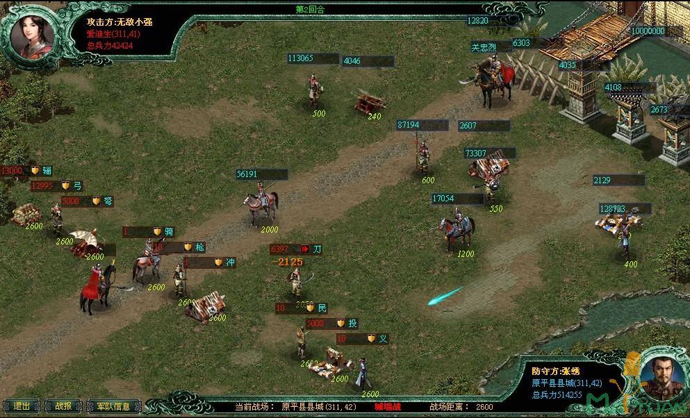 说实话,同类游戏我玩过不少,这游戏的同质化程度我就不强调了,不过它与众不同的地方倒是真的吸引了我,势力地图蛮有创意,至少我还是头一回看到。当然啦,最让我满意的还是它的战斗系统。阵营PK做得不错,不同国家可以直接打仗,不需要经过宣战那些繁琐的过程,这感觉很好。战斗场面是最让我满意的,算得上是庞大壮观,两军短兵相接的感觉出来了,用鼠标点点就可以指挥千军万马去交战了。虽然跟客户端游戏还是有差距的,但在我接触过的网页游戏中,是最逼真生动的了。打仗的时候,两军的将领骑着马威风无比地站在后面,兵在前面打,经典回合制战法,还做出了那种飞射状的攻击图像。在这里截个图给大家看哈~