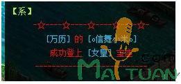 当上皇帝的玩家可以玩家系统会有如下提示,而其他玩家则会高呼“皇帝万岁万岁万万岁”。