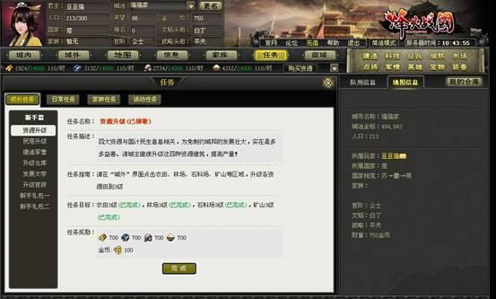 这里就是玩家的资源发源地了,资源依旧是城镇发展的根本,这个就不多介绍了,资源在增长以及升级时间上,设计的还是很合理的。