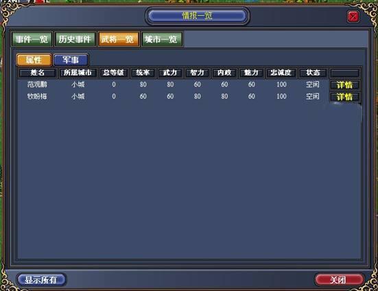 武将依旧是我们在游戏中不可缺少同伴。玩家在游戏中可以招募的武将数,还是较多的。当然,这与城镇的发展还是有着不可分割的联系的。