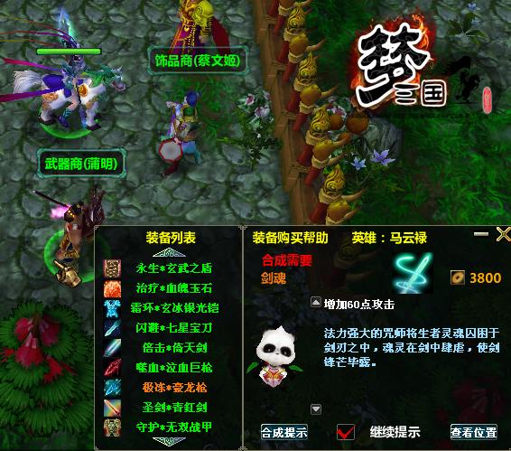 英雄选择正确的装备将是每个新手玩家首要学习领悟的重点所在。为了让更多的新手玩家在短期内摆脱菜鸟称号。为此,游戏主创人员想玩家所想,及玩家所及。专门为新手玩家开发了一套功能完备的新手指引系统。该系统将嵌入每局对战当中。届时,玩家可在屏幕右下角看到游戏吉祥物“梦梦”熊猫,将玩家选择英雄的出装备道具路线进行详细指引说明。新手玩家在对战中将不再因不熟悉英雄的装备路线而迷茫。真可谓广大《梦三国OL》“菜鸟”的福音。