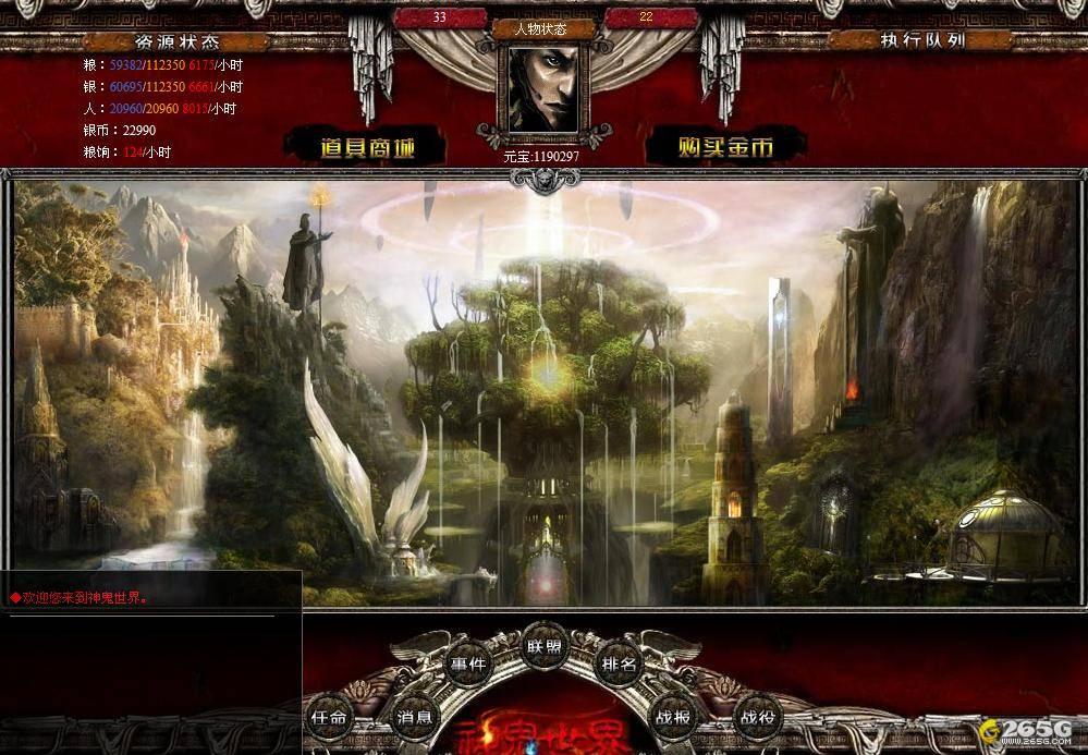 《神鬼世界》是由唐爱时空2009年最新开发的综合类网页游戏,由曾经监制过《RPG三国》的CEO余博强担任制作人监督制作。游戏包含了角色扮演,战争策略和模拟经营三大类型。无论从画面上还是游戏的可玩性上来将,《神鬼世界》都是一款可以挑战一线大作的游戏。