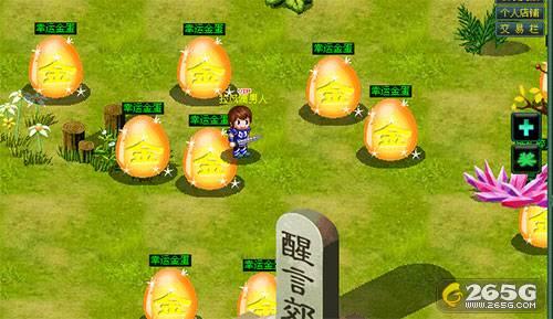 玩家通过砸破金蛋里可以获得各种珍贵的道具如结婚大礼包、打孔石、活力药水、声望球、紫色装备、VIP卡、金钱及藏宝阁里的各种元宝道具,只要RP够好,道具都有可能得到。