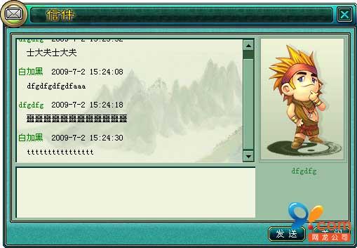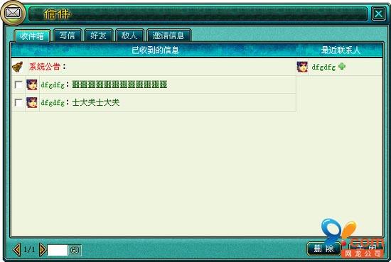 登入界面,点击左边的信件图标,您会体验到与QQ一样方便的聊天界面,好友不在线的时候,您可以给他留言,面对陌生的人你也无需担心,邮件系统专门为此需求而设,而且在YY的世界里,可是男女有别的哦,男性角色与女性角色分别采用一种小头像显示区分,男性角色姓名用蓝色字体,女性角色姓名用粉红色字体,不过我们可不能保证她是不是人妖。所以说它是QQ,是Gmail,不过是属于YY风格的!