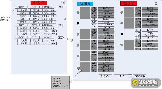 2)选择部队:在双方部队列表中对某个部队点"操作"按钮可对该部队进行操作;