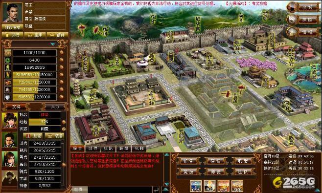 游戏一开始,你会得到一座属于自己的城池,也就是你在乱世中征战的大本营。你首先要完成的任务就是建设自己的城池,将官府、农田、铁矿、兵营、宗庙……等二十几项建筑一一完善,每一座建筑都有其独特的功能,缺一不可!随着建筑等级的提升,其所能发挥的作用也就越大,你的铁矿每小时能生产多少斤铁,也许就将决定着你在某场战争中的胜负。看着一座座建筑在自己手下被创建出来,看着本来是一块空地的城池变得繁华热闹,肯定会让你有种难以言说的成就感。